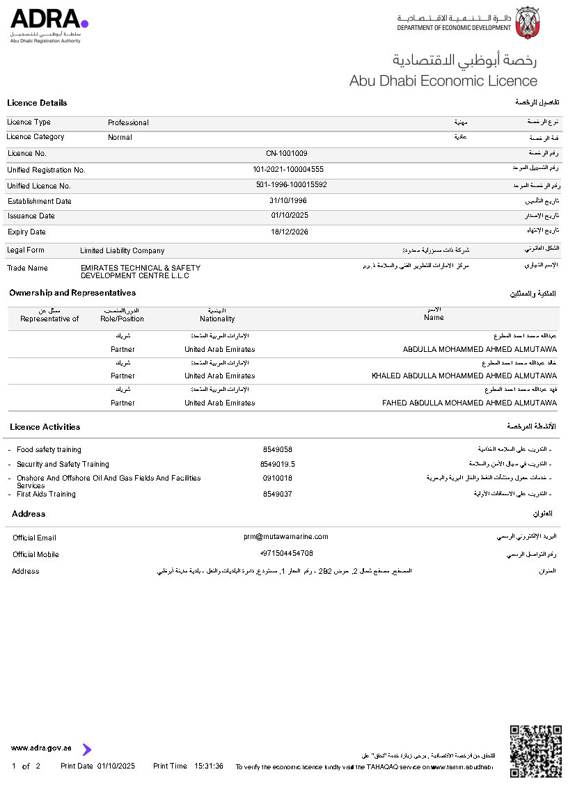 A proud member of the Mutawa Group of Companies, specializing in comprehensive safety training solutions. As part of this esteemed group, we synergize with other entities to offer a holistic approach to safety across various industries.